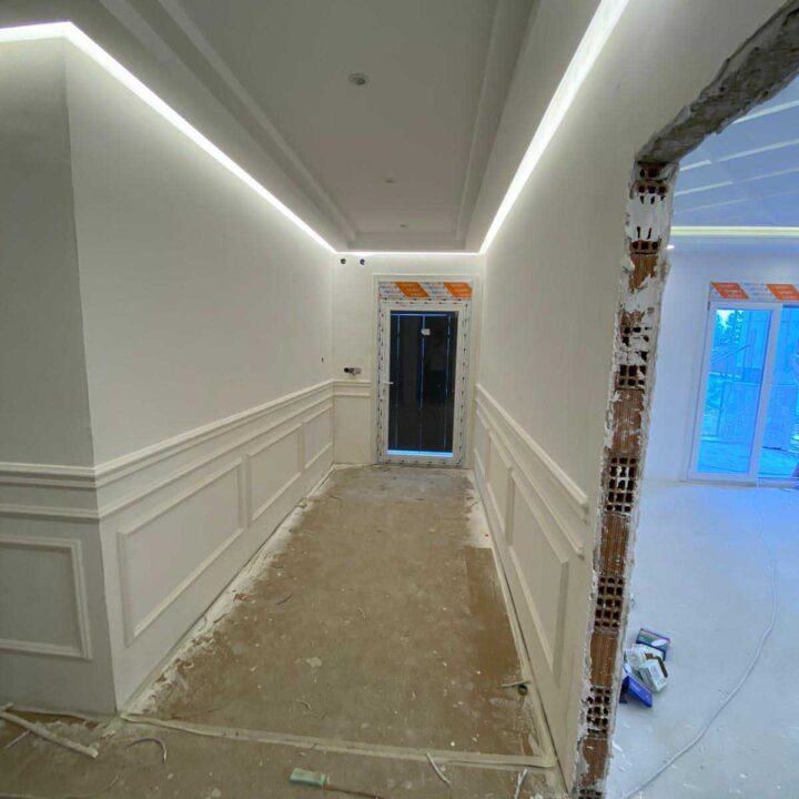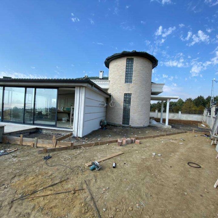 1000 m2 arsa alanında 180 m2 oturum alanına sahip yapı 3 katlıdır. 5 oda, 2 salondan oluşmakta olup her oda özel banyo alanına sahiptir. Yerden ısıtma sistemi, vrf soğutma sistemi ve ankastre bataryaları ile modern bir çizgiyi yakalamaktadır. Anahtar teslim 4 ayda yapılarak teslim edilmiştir.